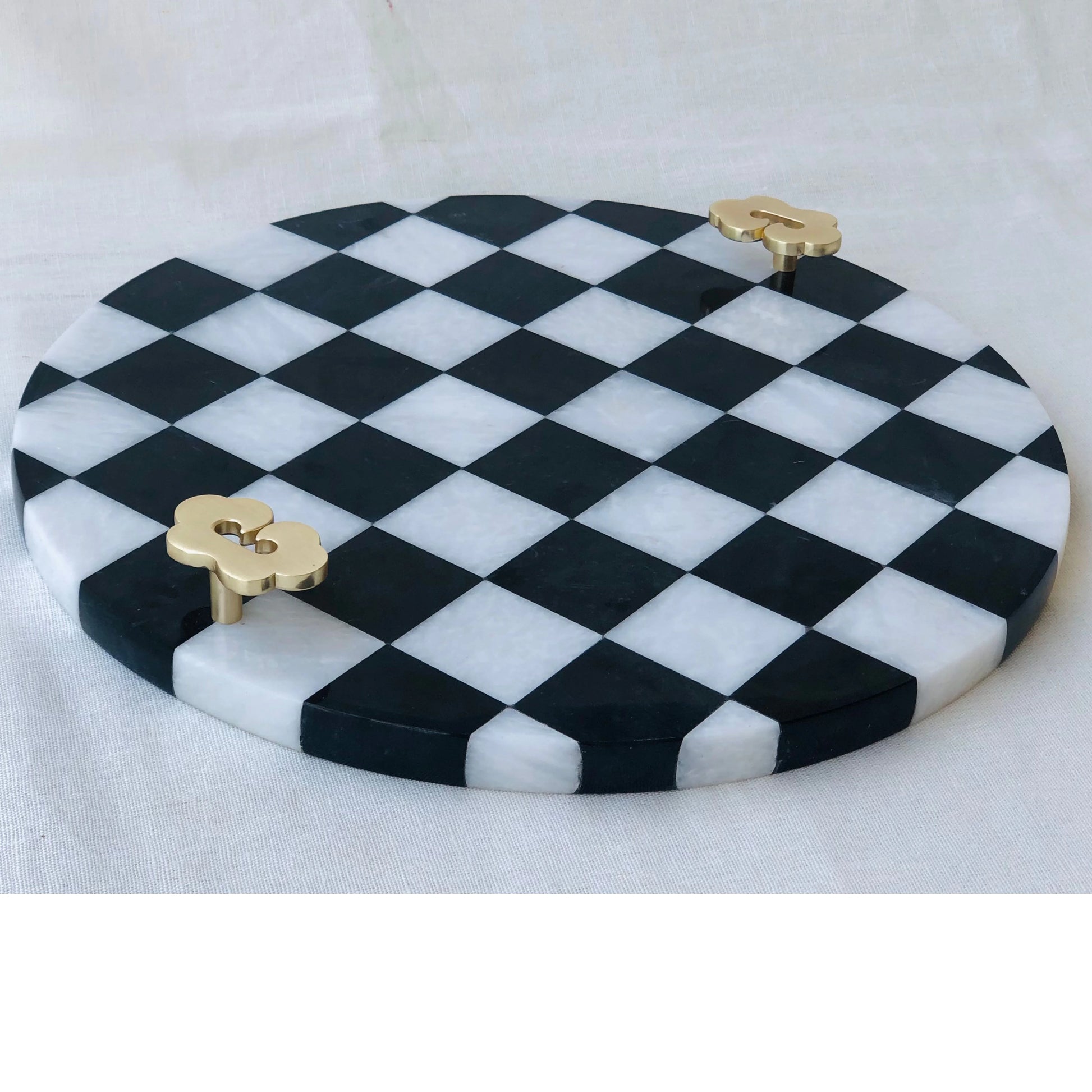 The Chess Round Marble Tray features a checkered pattern crafted from contrasting marble. Designed as both a serving tray and a décor accent, it reflects timeless craftsmanship with a modern twist. Its bold black and white pattern makes it a centerpiece in any space, while the polished marble surface ensures durability and elegance. Perfect for styling on coffee tables or dining areas, this tray is a blend of artistry and functionality, showcasing Pakistan’s finest marble in a truly unique way.